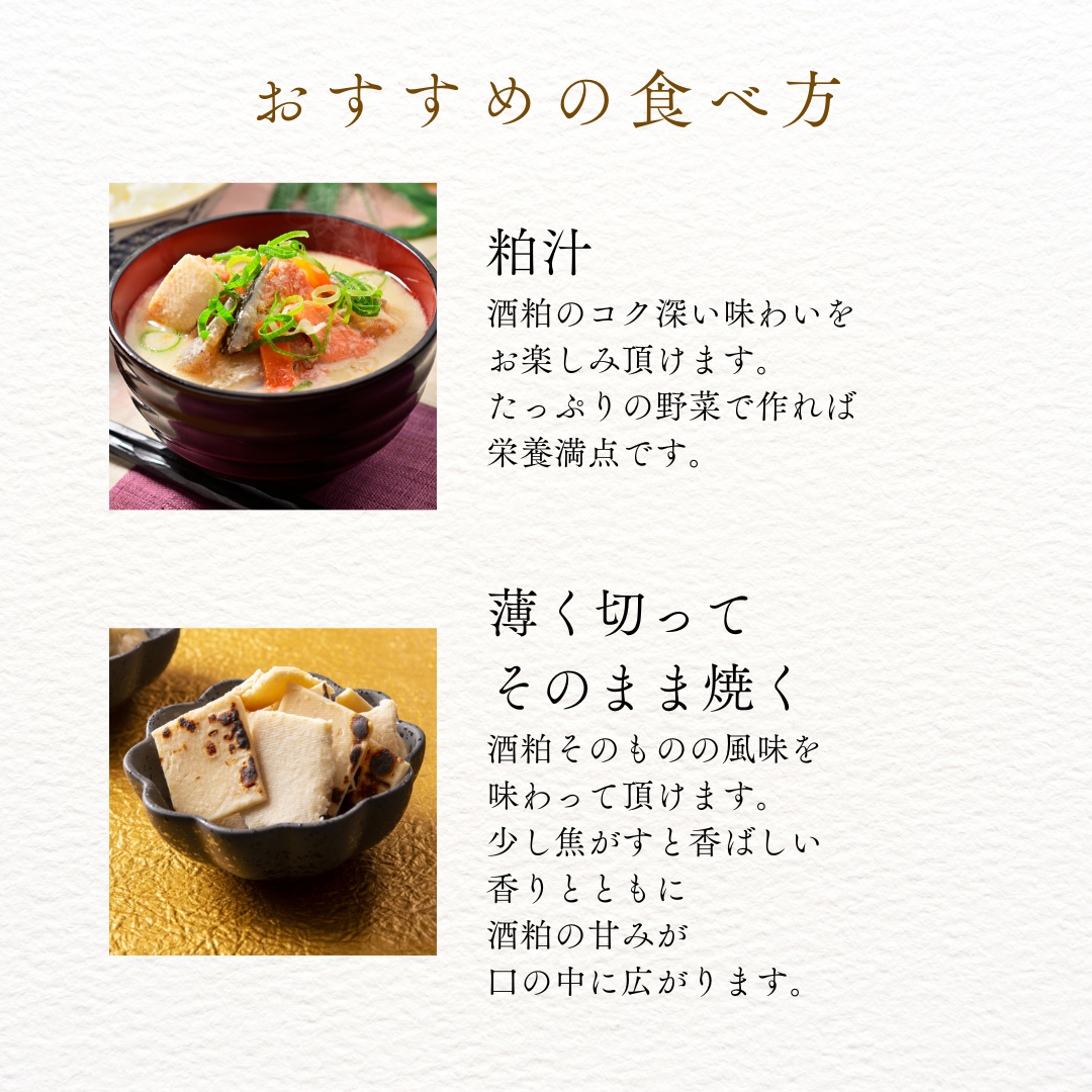 そのため、冷凍酒粕などと比較してもしっとりとしており、上質なお酒の風味をお楽しみ頂けます。